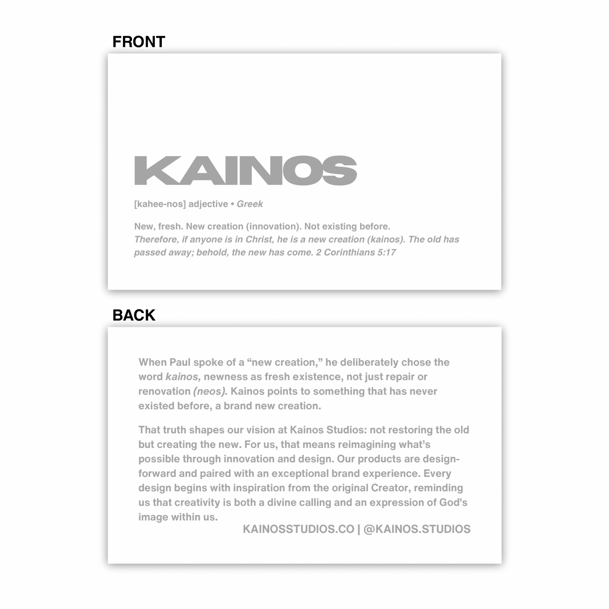 Packaged with Kainos verse description card.